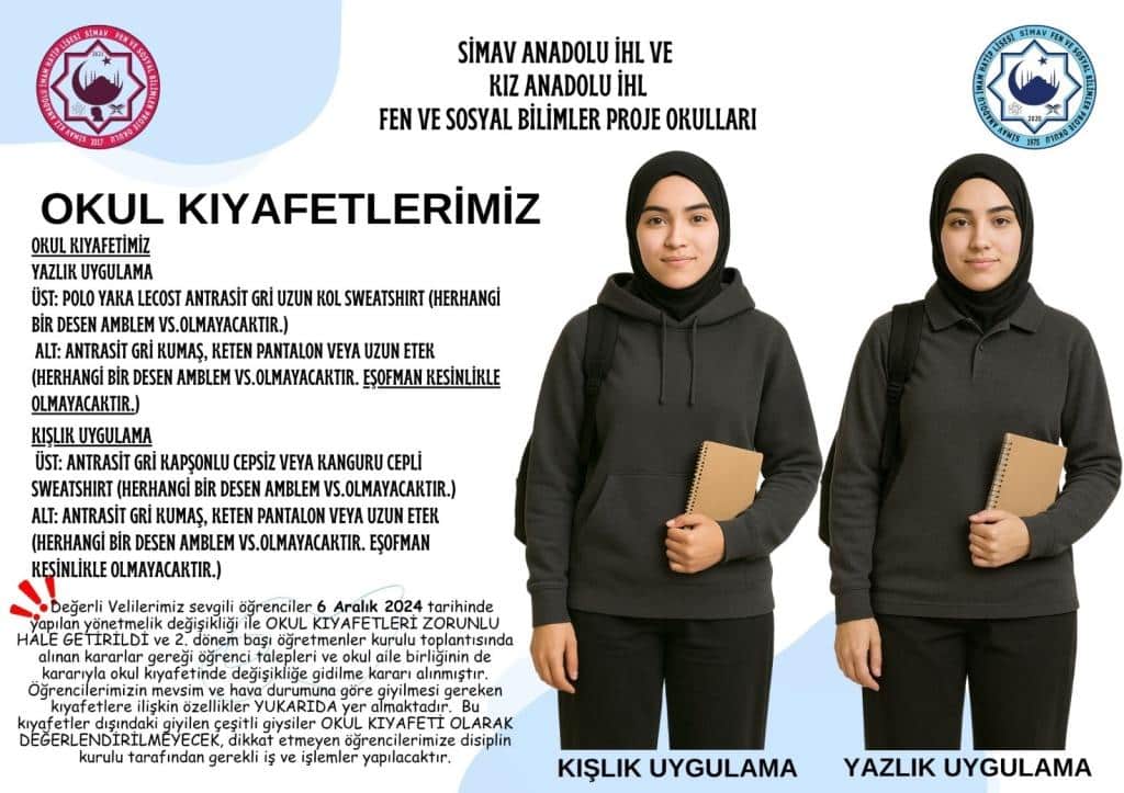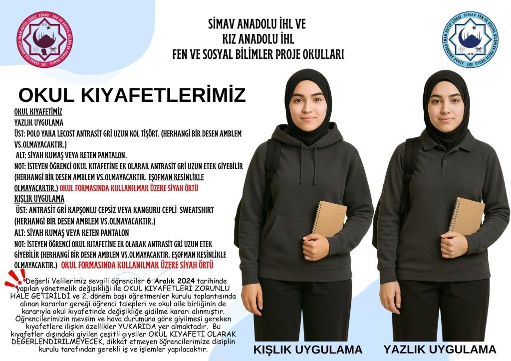 2025-2026 EĞİTİM ÖĞRETİM YILINDA UYGULANACAK OKUL KIYAFETLERİMİZ